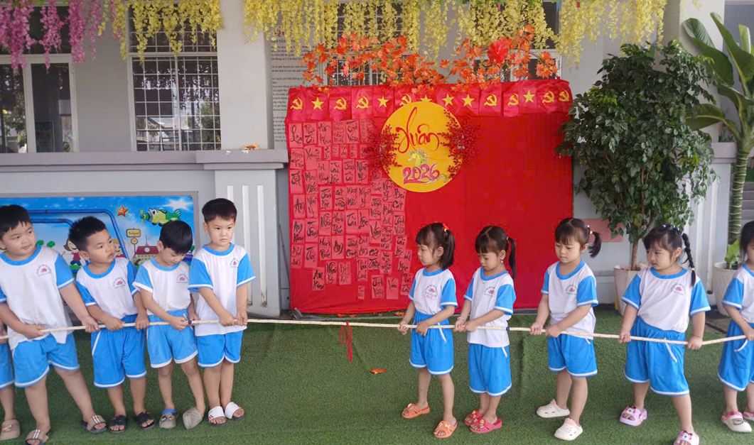 Trong chương trình giáo dục mầm non, việc tổ chức cho trẻ tham gia các trò chơi dân gian không chỉ mang lại niềm vui mà còn góp phần gìn giữ nét đẹp văn hóa truyền thống. Qua hình ảnh thực tế, có thể thấy các bé mẫu giáo rất hào hứng khi tham gia các trò chơi như trồng cây chuối, kéo co và nhảy bao bố…