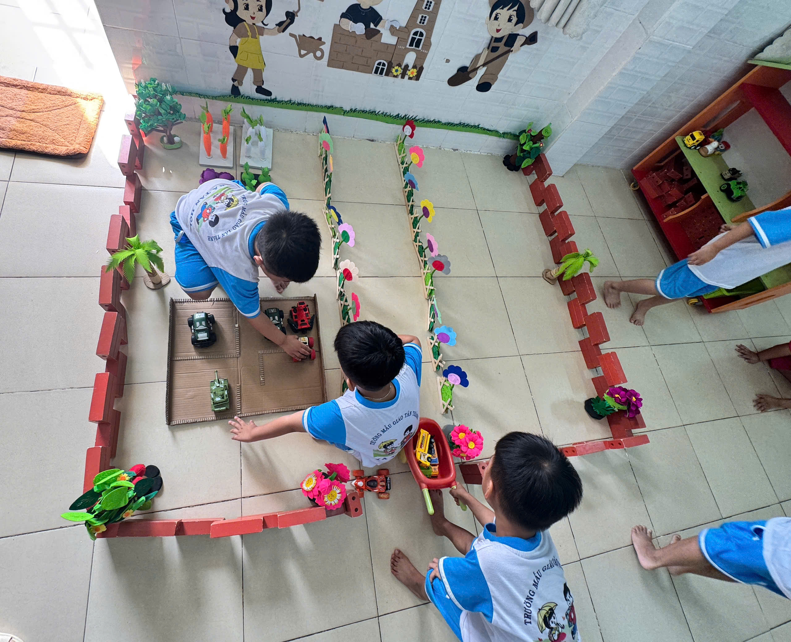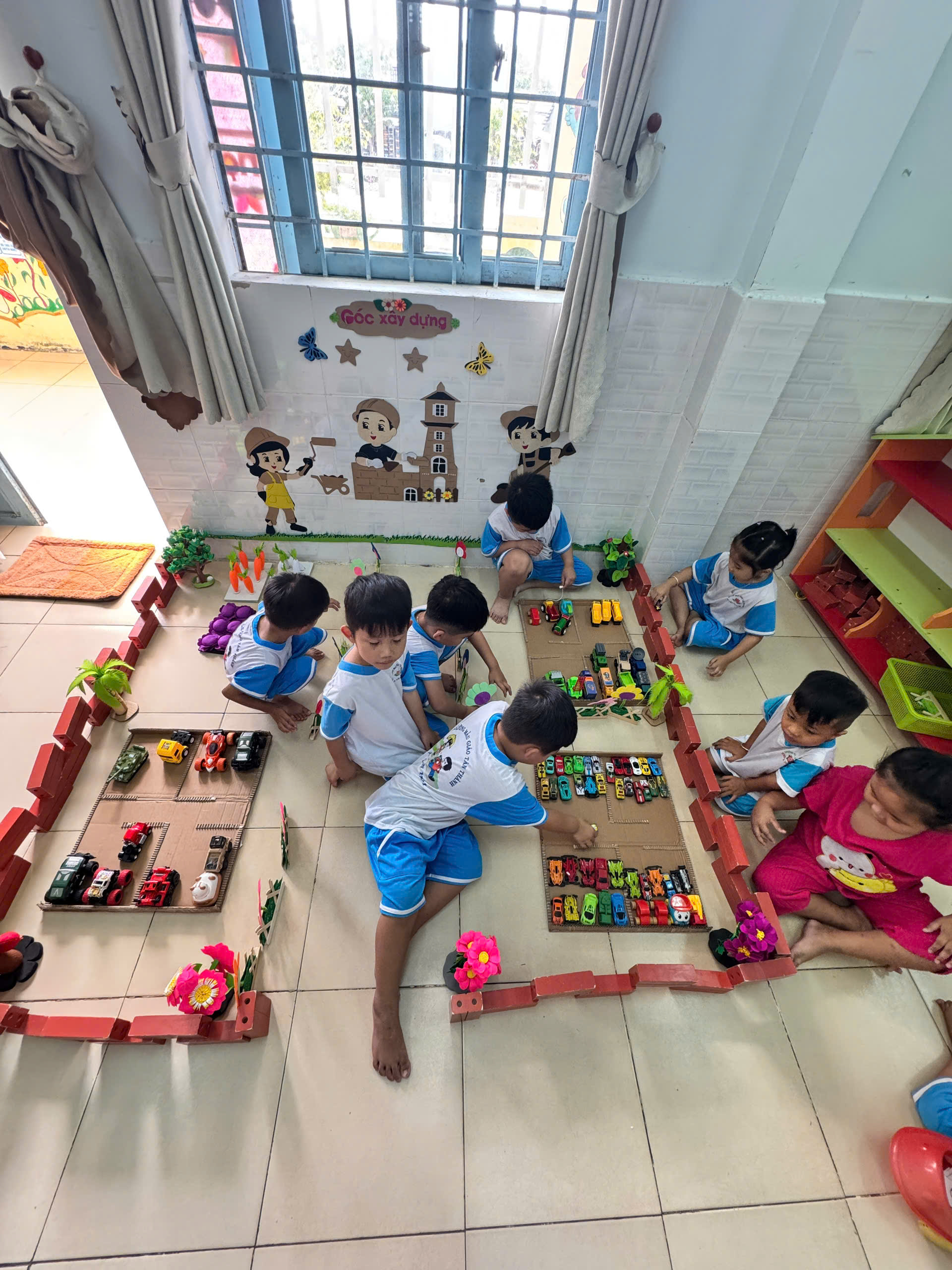 Không chỉ dừng lại ở việc xây dựng, các bé còn nhập vai làm người trông giữ xe, người gửi xe, tạo nên những tình huống chơi phong phú và gần gũi với cuộc sống hằng ngày 🎭. Qua hoạt động này, trẻ phát triển khả năng tư duy, trí tưởng tượng, kỹ năng làm việc nhóm và biết giữ gìn trật tự, gọn gàng.