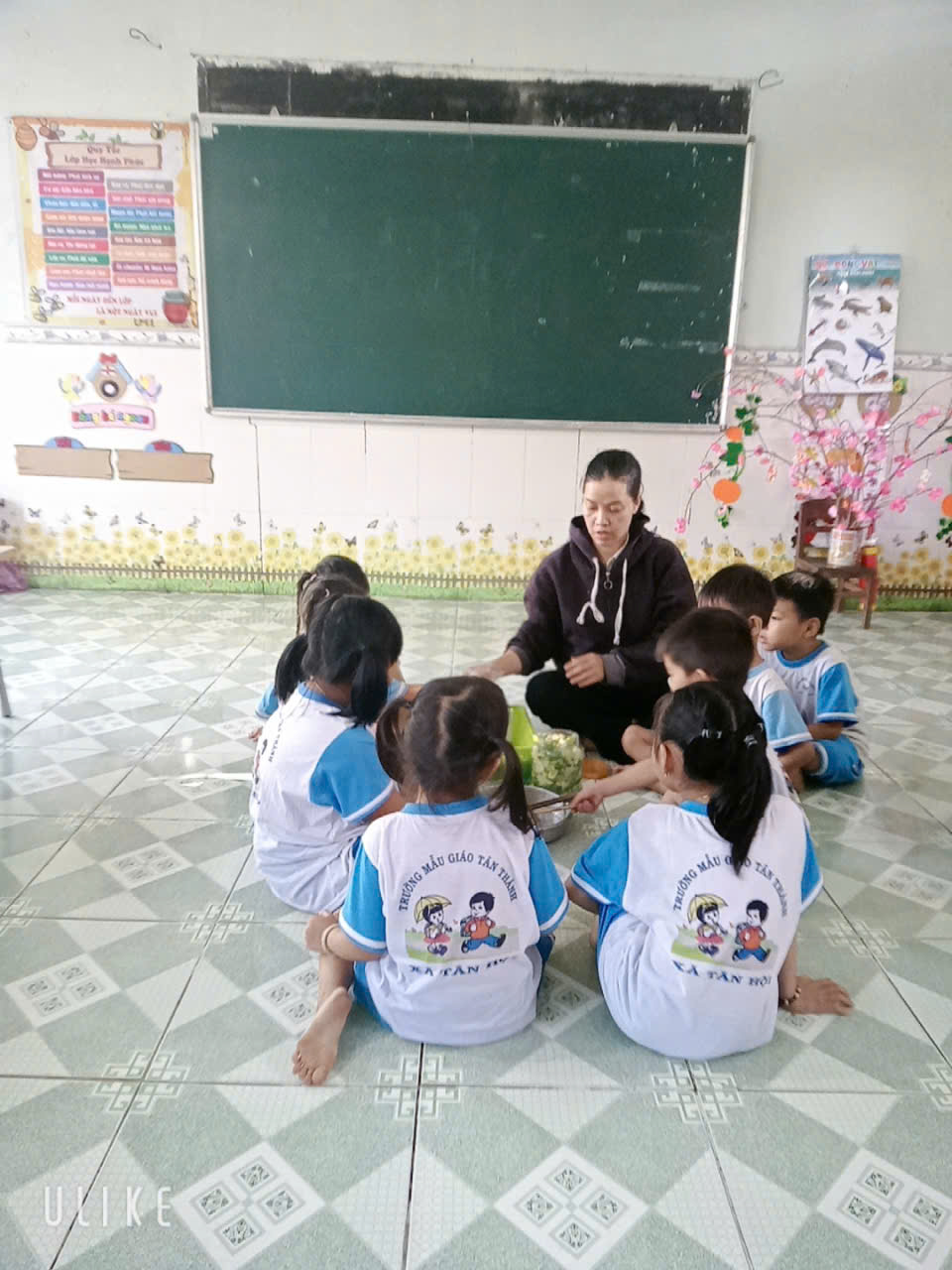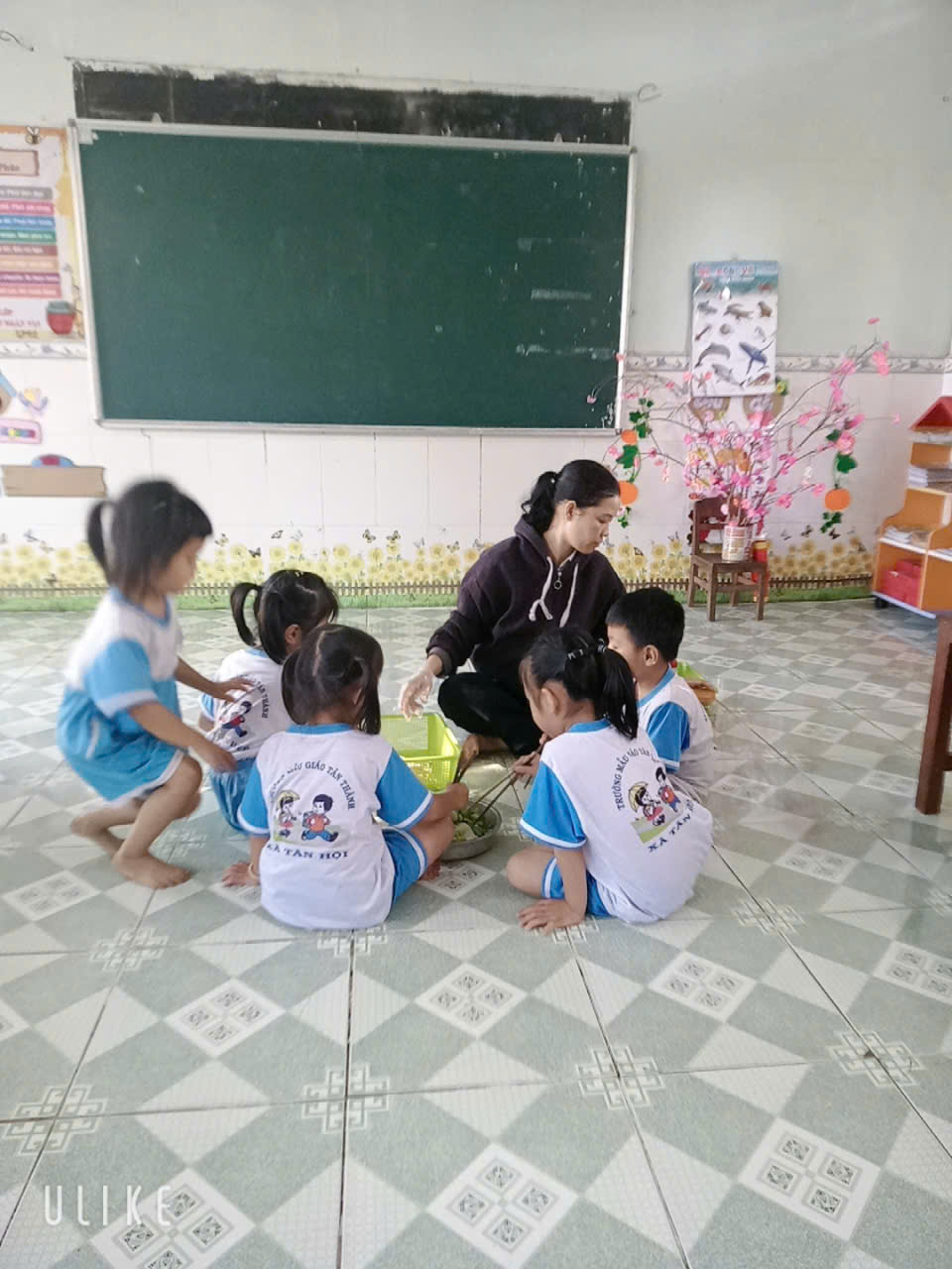 Trong quá trình thực hiện, các bé rất hào hứng, chăm chú và tích cực tham gia. Có bé nhẹ nhàng xếp từng lá dưa, có bé cẩn thận múc nước, tất cả đều thể hiện sự khéo léo và tinh thần hợp tác với bạn bè. Không khí lớp học trở nên vui tươi, ấm áp hơn bao giờ hết.